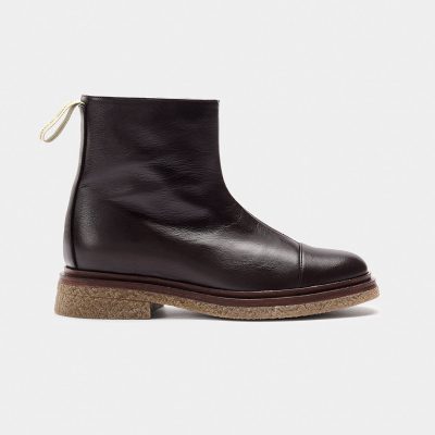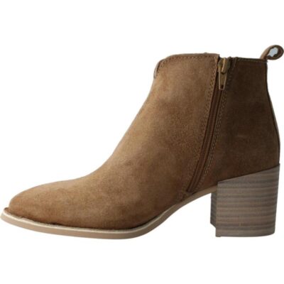 El precio original era: 119,95 €.95,96 €El precio actual es: 95,96 €.Botín para mujer de piel color castaña, con cierre mediante cremallera y caña media.