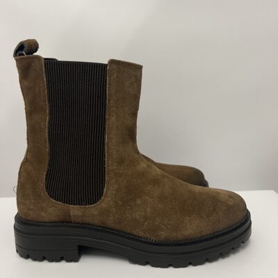 El precio original era: 125,00 €.100,00 €El precio actual es: 100,00 €.Bota marrón con goma lateral en piel serraje.