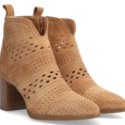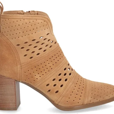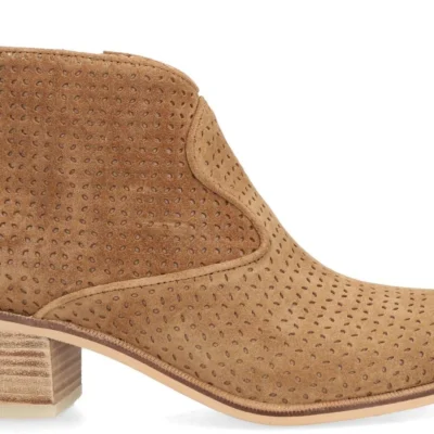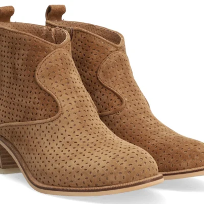El precio original era: 89,95 €.71,96 €El precio actual es: 71,96 €.Botín fabricado en piel con tacón de 6,5 cm, suela antideslizante, con cierre mediante cremallera y caña baja.
