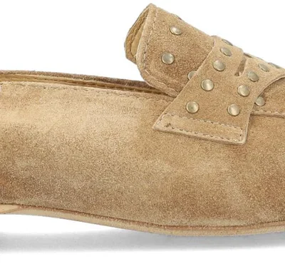 El precio original era: 79,95 €.63,96 €El precio actual es: 63,96 €.Mocasines en piel serraje, con detalles de tachas en empeine y talón. Sin cierre.