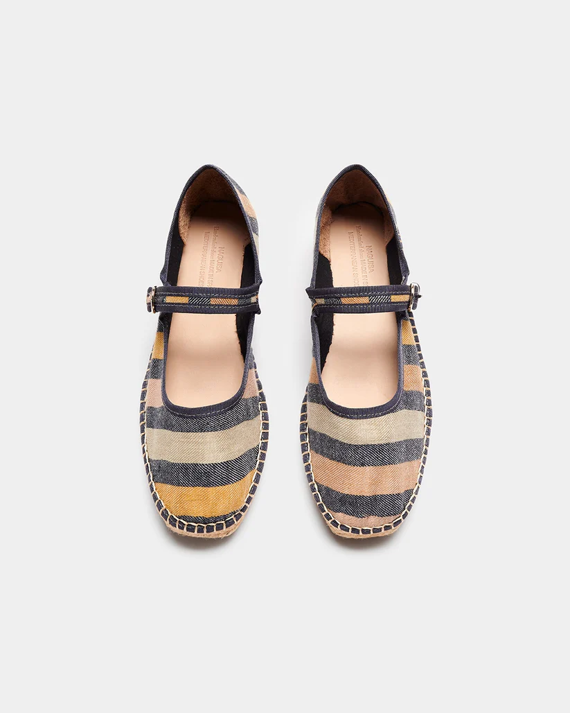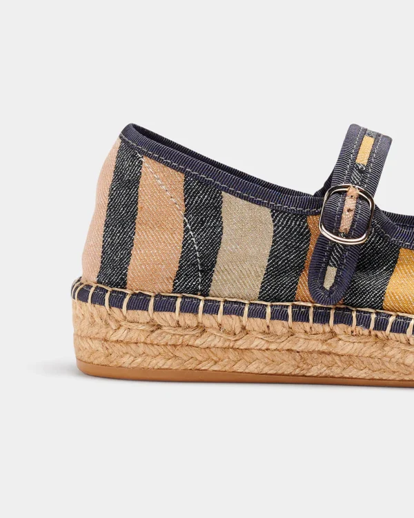 Alpargata a rayas estilo mercedita con detalle de ribete a contraste.