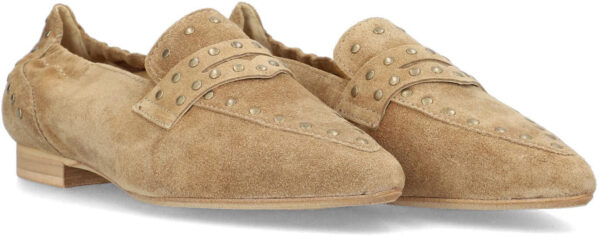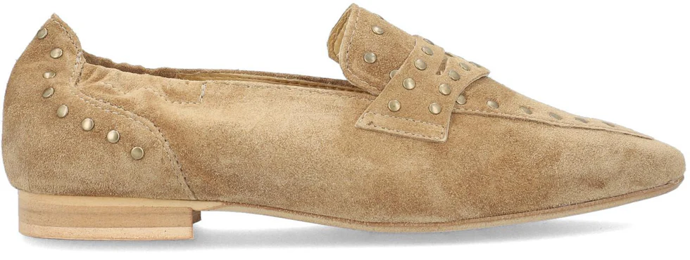Mocasines ALPE en piel, serraje. Detalles de tachas en empeine y talón. Altura tacón 1 cm. Sin cierre.