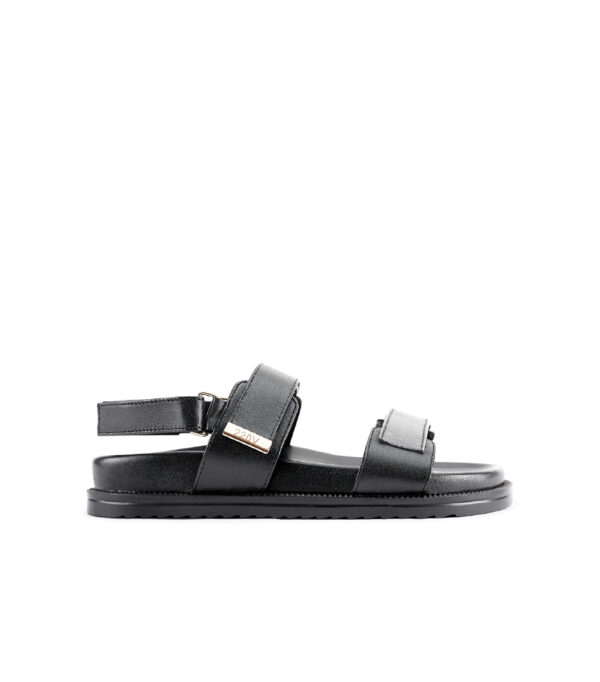 Sandalia plana tipo bio con tiras de piel y ajuste con velcro. Altura 3 cm.