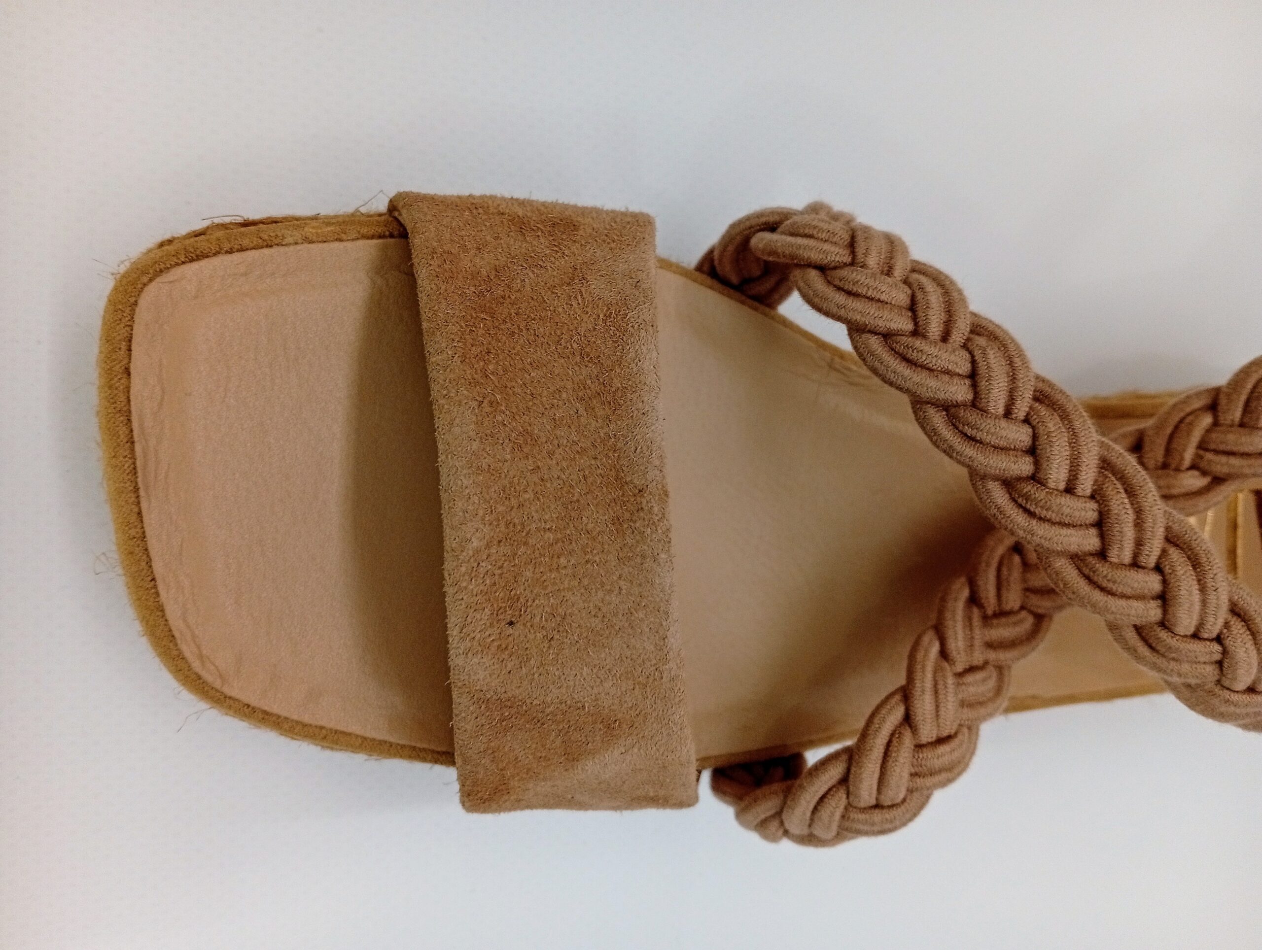 Sandalia GAIMO Milly en piel de ante suave en color beige. Con elegantes tiras trenzadas elasticas, logran el equilibrio perfecto entre sofisticación y comodidad, convirtiéndose en un imprescindible para el día a día. Diseñadas y fabricadas artesanalmente en Arnedo, España.