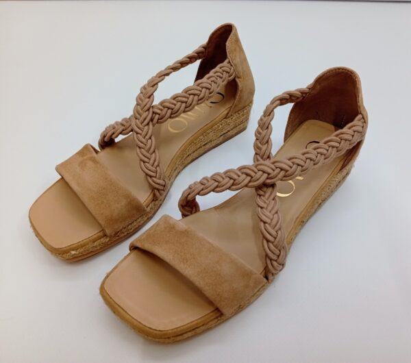 Sandalia de ante suave con tiras trenzadas elasticas.